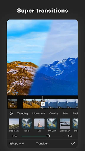 New transitions are created by individual creators on every trend to amaze you and your friends with amazing transition effects for fun purposes.