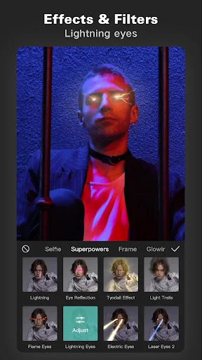 You can add filters to your main clips and to your overlays. You can easily add movie-style video filters and full effects into your videos, such as Glitch effect, Stop motion, Retro, and RGB.