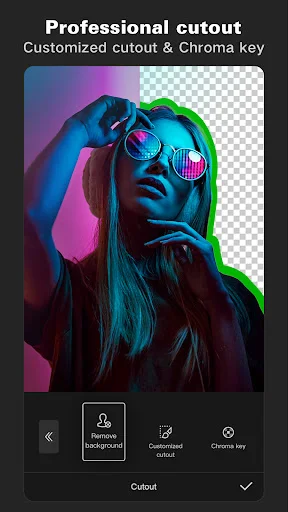 It will precisely remove the background of the portrait video and replace it with an uploaded picture or change the background color.